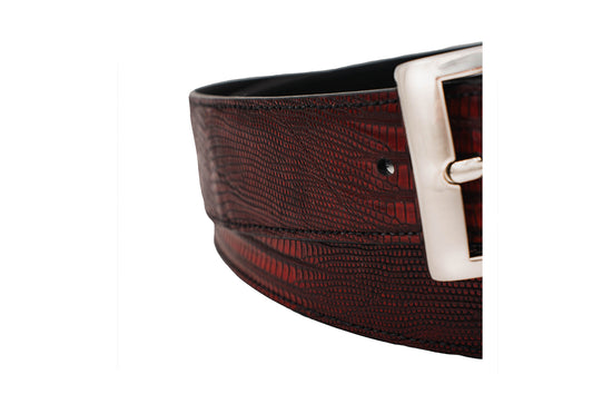 Black Cherry Lizard Leather Belt