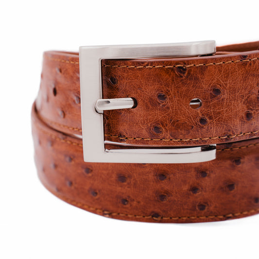 Cognac "The Taylor" Full Quill Ostrich Leather Belt