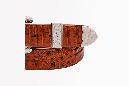 Cognac Caiman Hornback "The Taylor" Crocodile Leather Belt