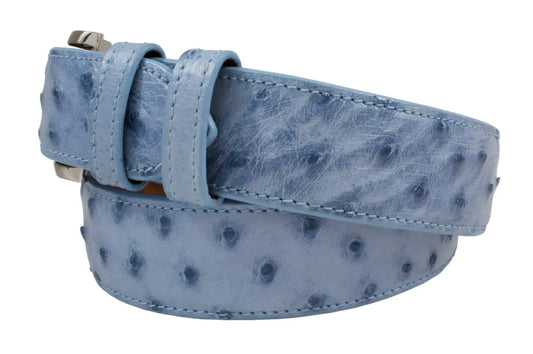 Denim Bruciato Full Quill Ostrich Leather Belt
