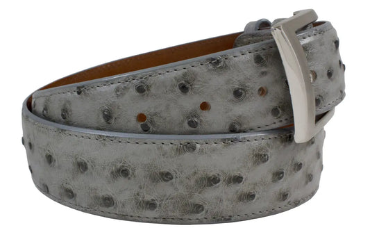 Gray Bruciato Full Quill Ostrich Leather Belt