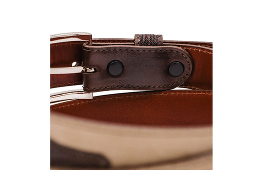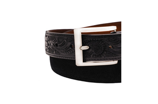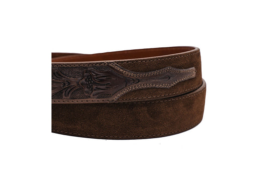 Hand tooled Cappuccino Italian Suede Leather Belt