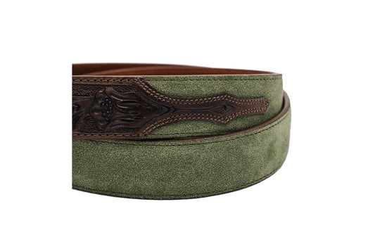 Hand Tooled Olive Green Italian Suede Leather Belt