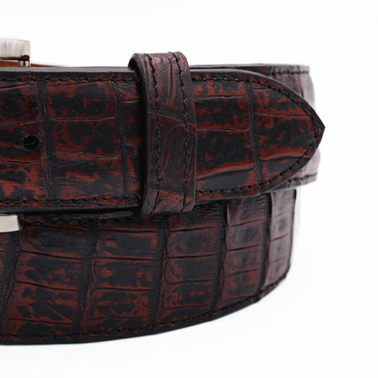 Hornback Black Cherry Caiman Crocodile Leather Belt