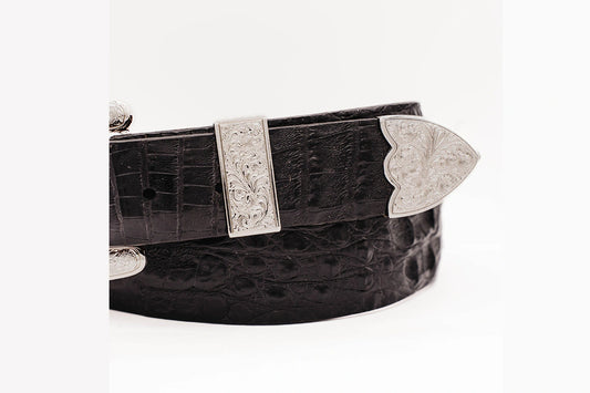 Black Caiman Hornback "The Taylor" Crocodile Leather Belt