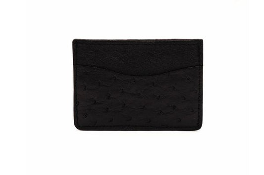 Full Quill Black Ostrich Leather Card Holder Wallet