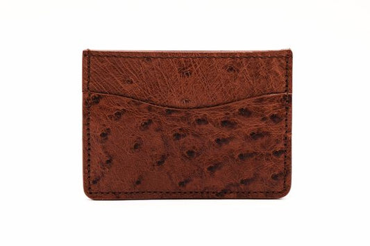 Full Quill Cognac Ostrich Leather Card Holder Wallet