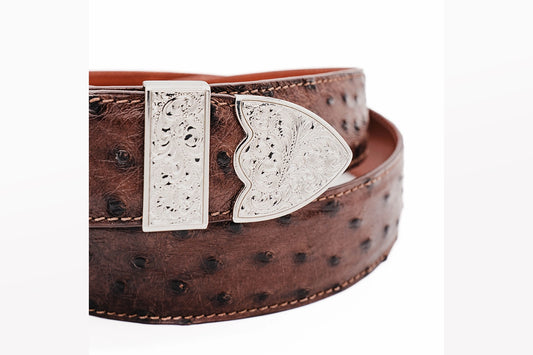 Brown "The Taylor" Full Quill Ostrich Leather Belt