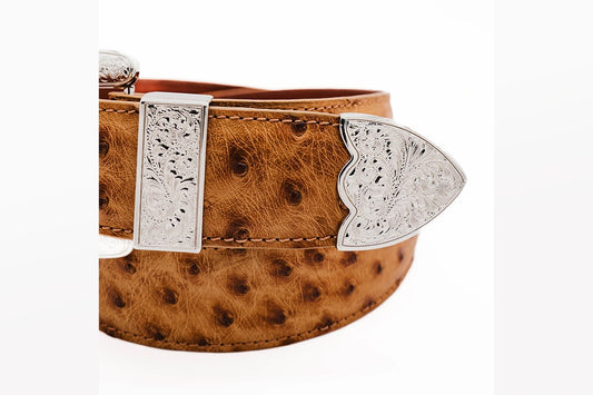 Tan Bruciato "The Taylor" Full Quill Ostrich Leather Belt