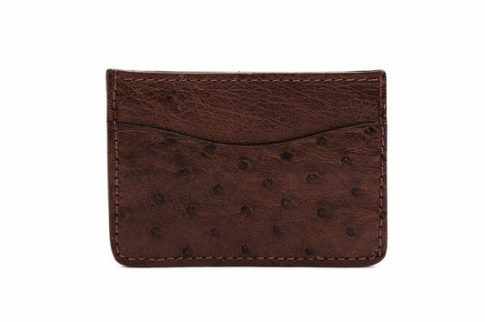 Full Quill Brown Ostrich Leather Card Holder Wallet