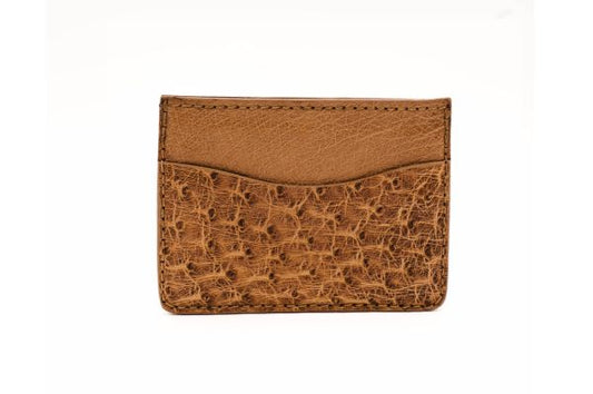 Full Quill Cognac Ostrich Leather Card Holder Wallet