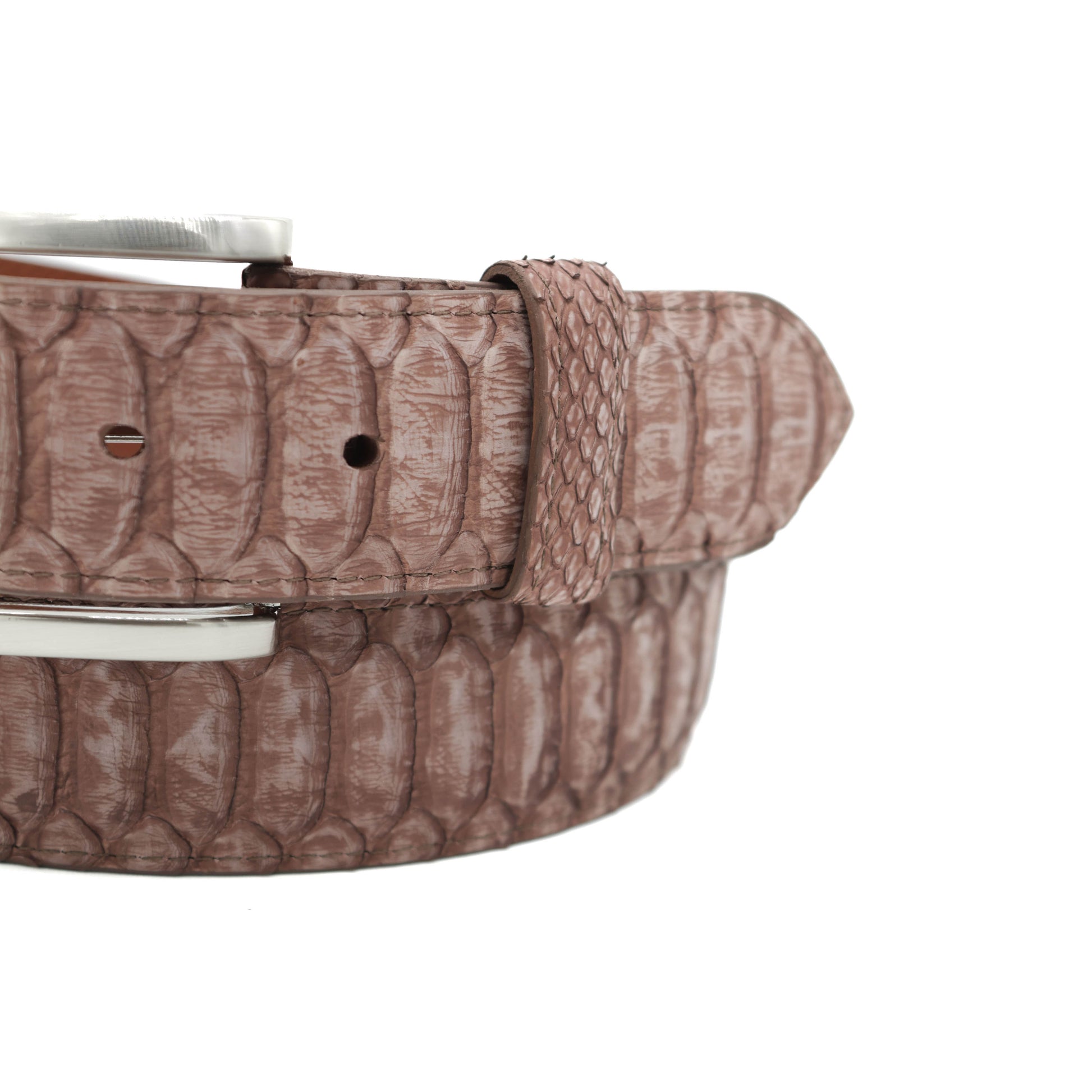Center Cut Washed Brown Python Leather Belt