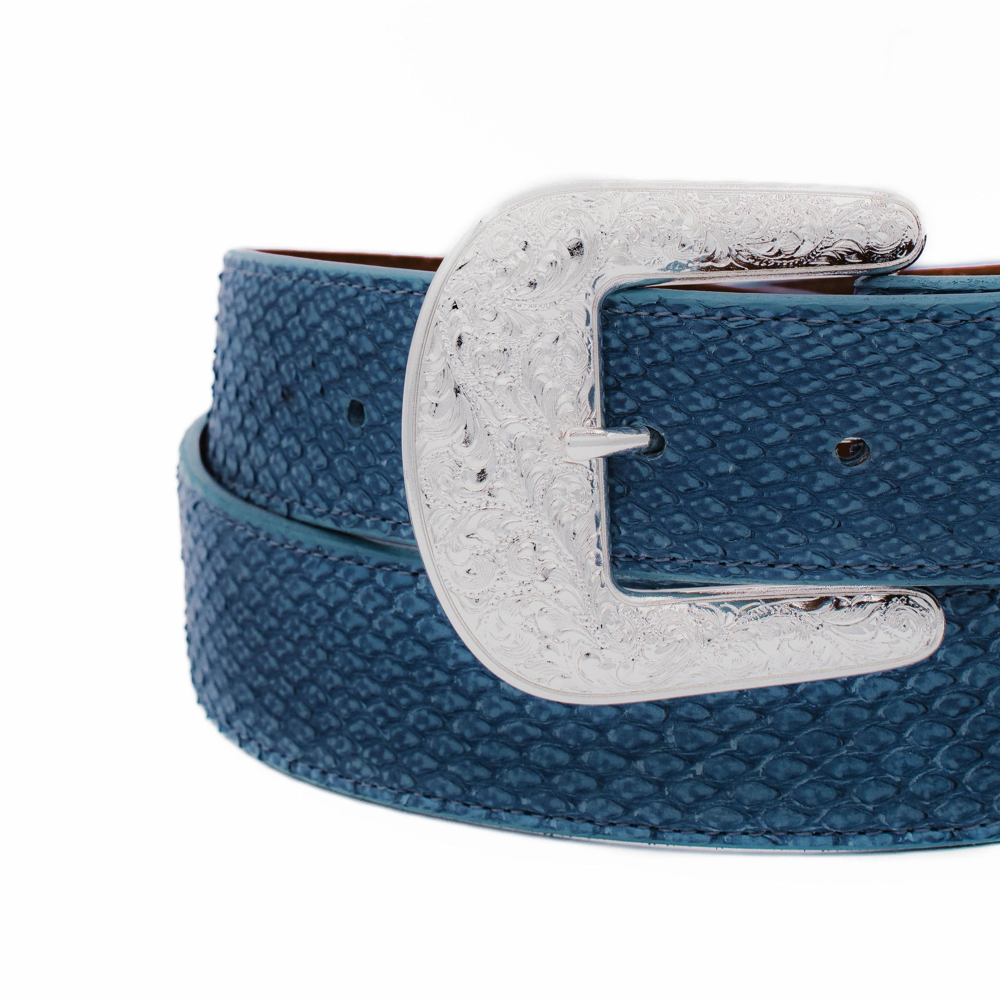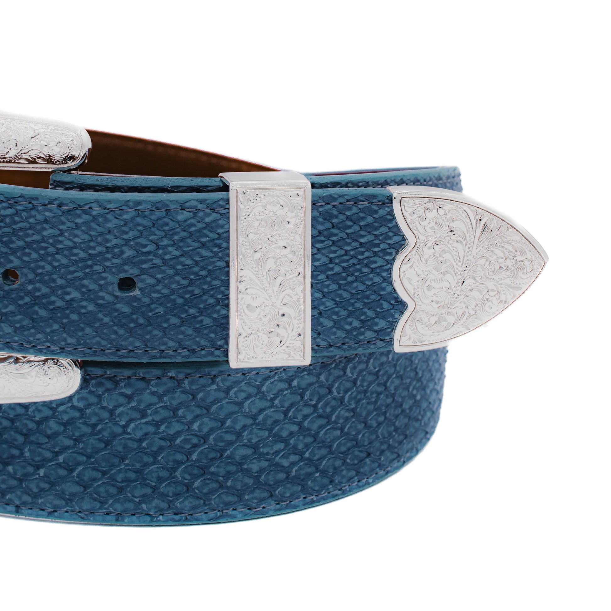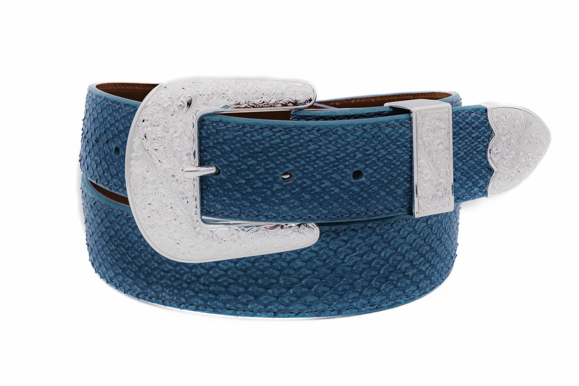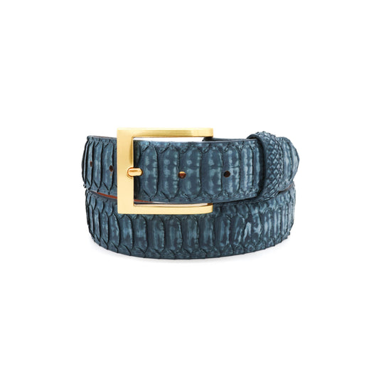 The "Taylor" Washed Blue Small Scale Python Leather Belt