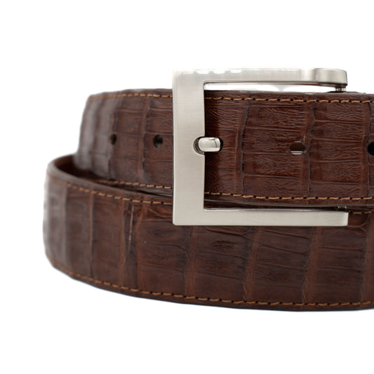 Please note that darker-colored leathers, particularly in exotic varieties such as caiman, lizard, or ostrich, may release dye when in contact with light-colored fabrics. This is a natural property of richly dyed leather and does not indicate a defect.