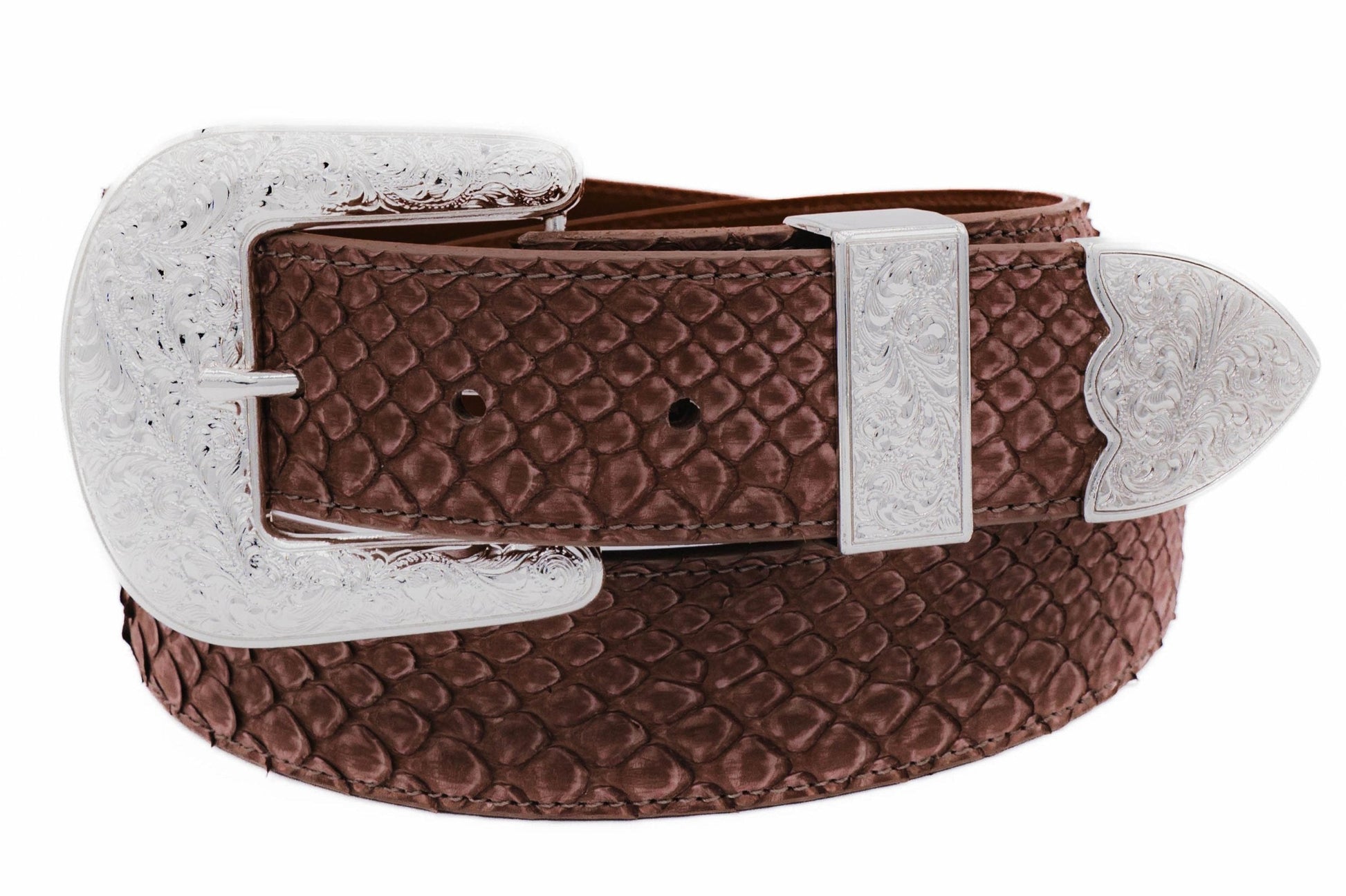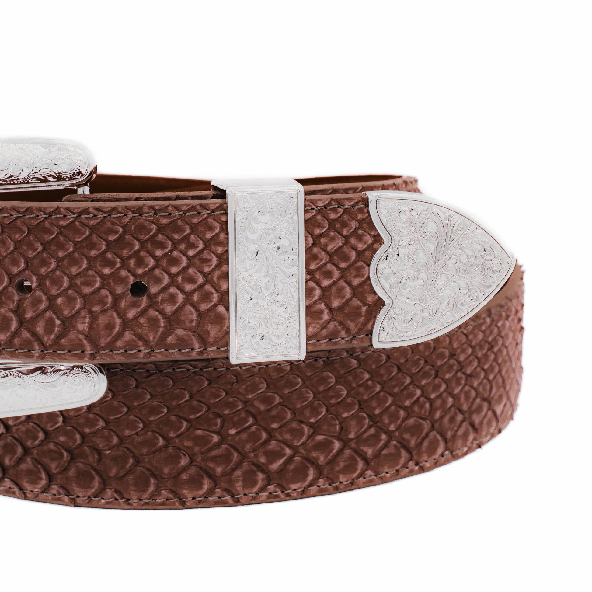 The "Taylor" Washed Brown Small Scale Python Leather Belt